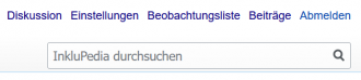 Eine einfache Suche ist auf jeder Seite oben rechts in dem Suchfenster mit dem Hilfstext InkluPedia durchsuchen möglich: