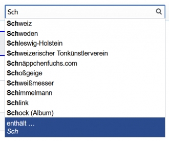 Anzeige vorhandener Lemmata während der Eingabe, welche mit den eingegebenen Buchstaben beginnen: